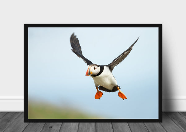 • Etter printing spennes lerretsduken på en kraftig blindramme. For de fleste formatene bruker vi en 40mm tykk ramme, slik at det oppnås en flott dybde-effekt når rammen henges på veggen. Deretter monterer vi på oppheng med stålvaier og kunstverket ditt kan henges rett på vegg.
