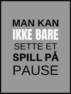 Kul gamingplakat med teksten "man kan ikke bare sette et spill på pause".