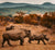 Tre neshorn krysser veien i en afrikansk nasjonalpark
