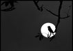 Plakat av nattergalen spektakulært plassert mot månen.