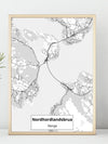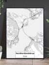 Stilren plakat som viser kartet rundt Nordhordlandsbrua. Dersom du ønsker andre farger/design på plakaten kan du endre dette ved å gå til "Lag byplakat" i menyen.