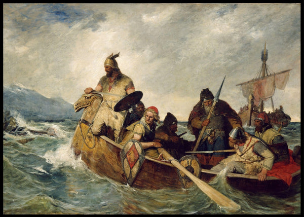 Poster av maleriet "Nordmennene lander på Island" av Oscar Wergeland. Han ble født i Christinania i 1844 og døde i 1910. Han var en berømt norsk historiemaler.