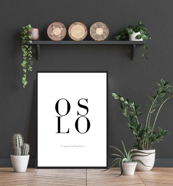 Stilren og tidløst plakatdesign med teksten "OSLO".