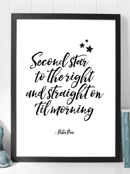 Plakat med nydelig utforming og sitat fra Peter Pan.