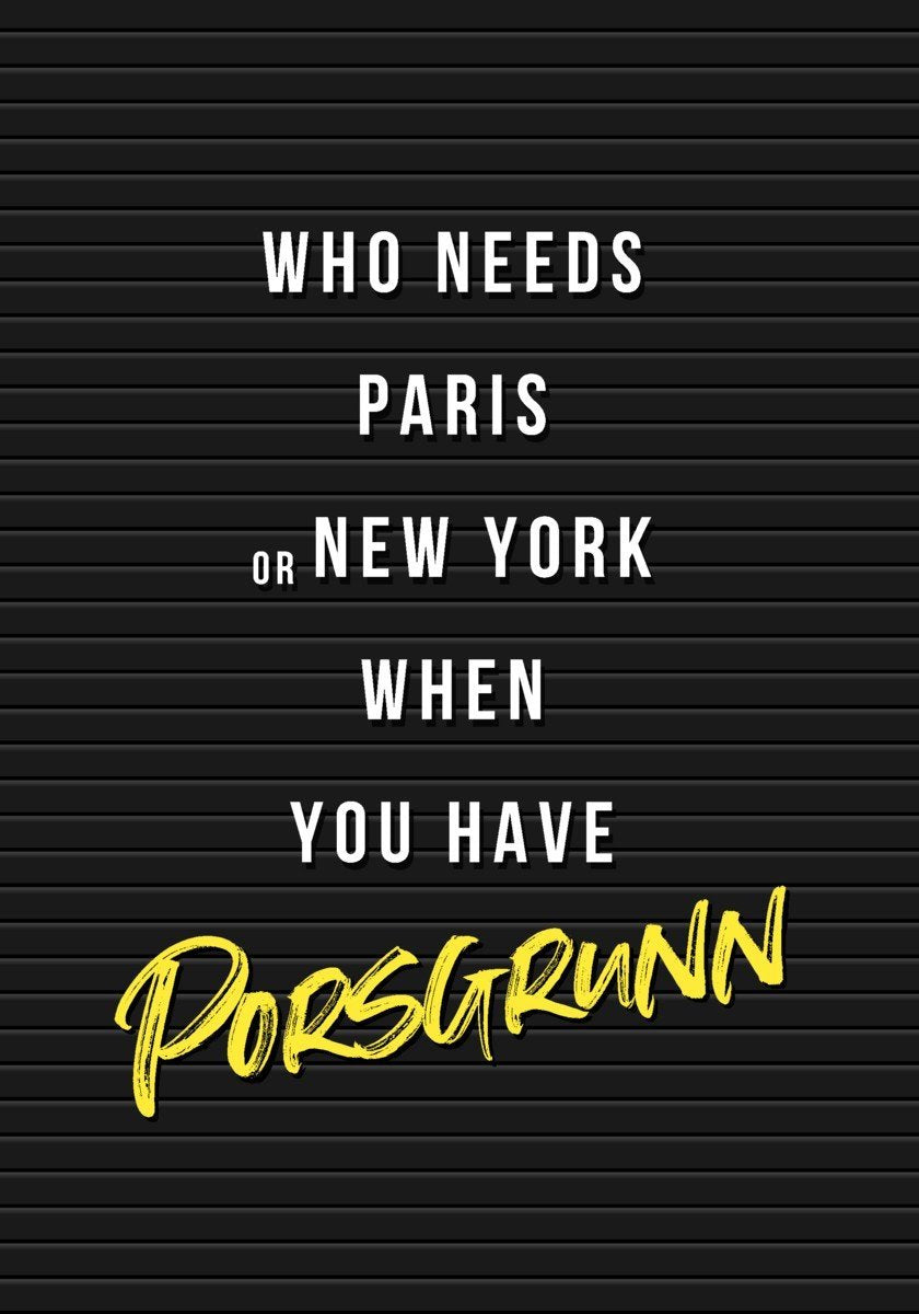 Stilren og artig byposter med teksten "who needs paris or new york when you have PORSGRUNN".