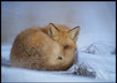 Nydelig plakat av en rødrev ligger sammenkrøpet og prøver å holde varmen.
