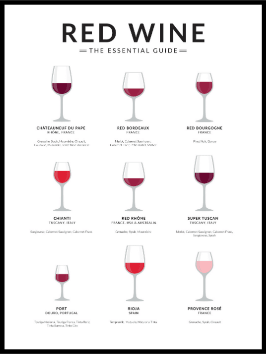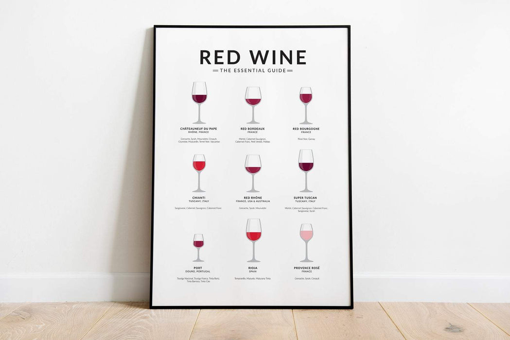 Stilig plakat med rødvinsguide som passer perfekt til kjøkkenet!