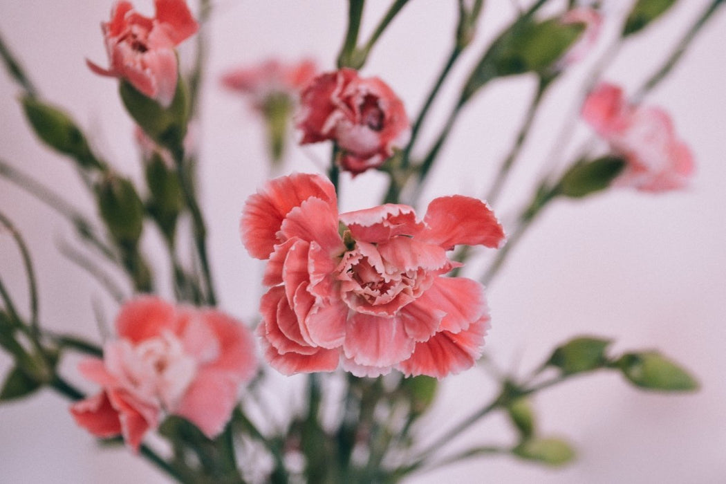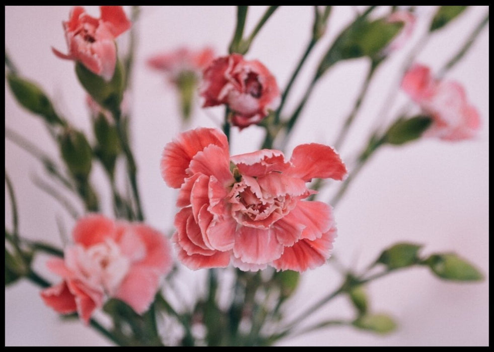 Vakker poster med rosa blomstermotiv.