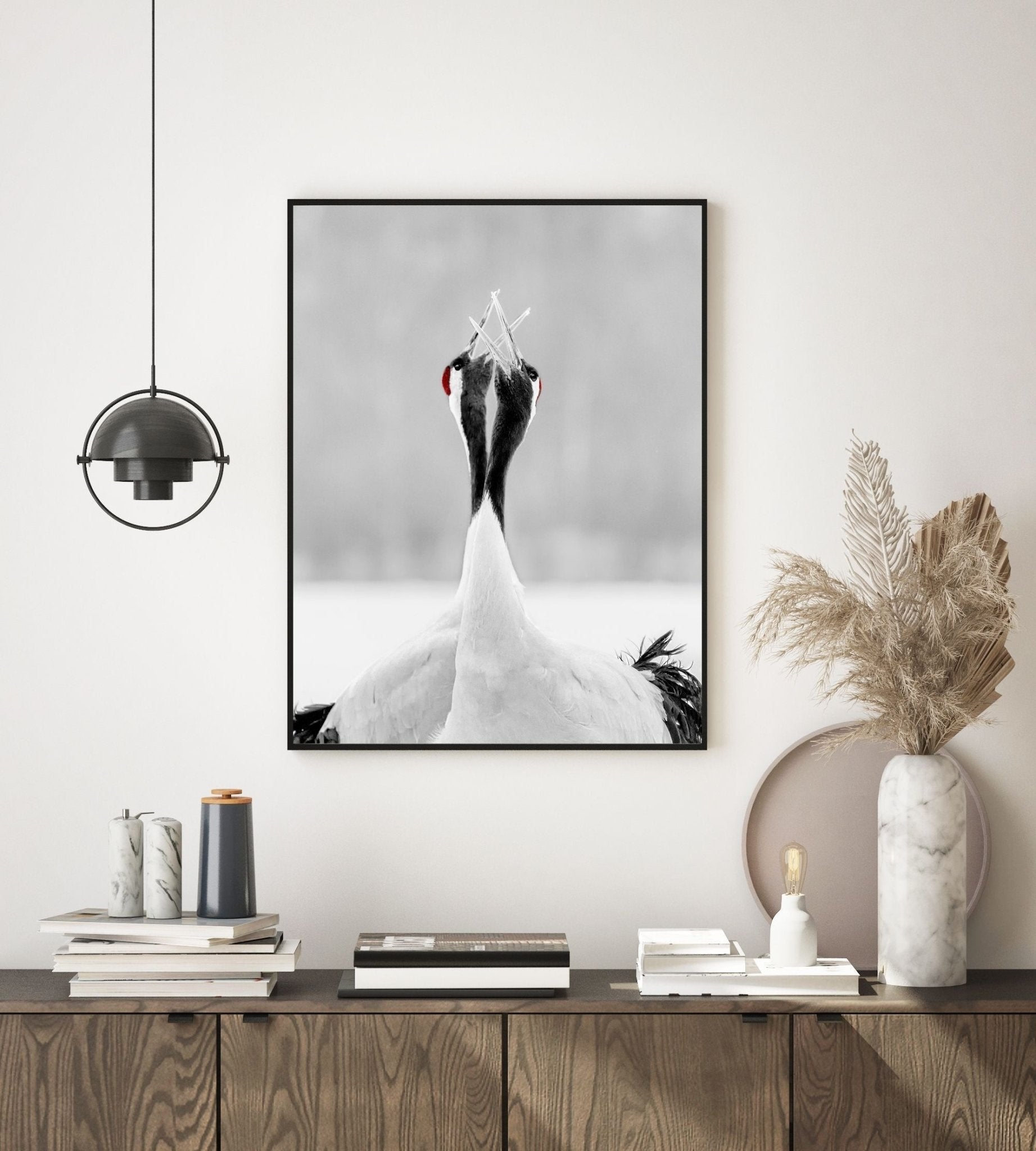 - Etter printing spennes lerretsduken på en kraftig blindramme. For de fleste formatene bruker vi en 40mm tykk ramme, slik at det oppnås en flott dybde-effekt når rammen henges på veggen. Deretter monterer vi på oppheng med stålvaier og kunstverket ditt kan henges rett på vegg.