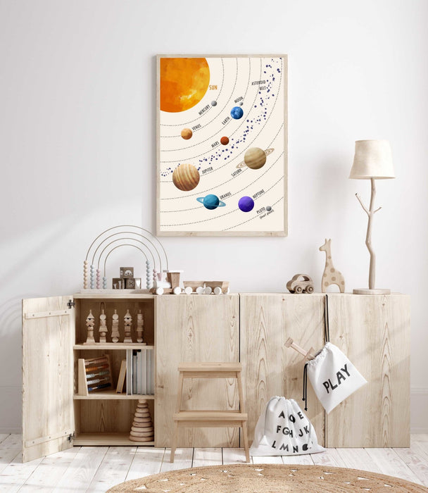 Kul plakat til barnerommet som viser planetene i solsystemet vårt. Kombiner gjerne sammen med våre andre verdensromplakater for å lage en stilig bildevegg på barnerommet.
