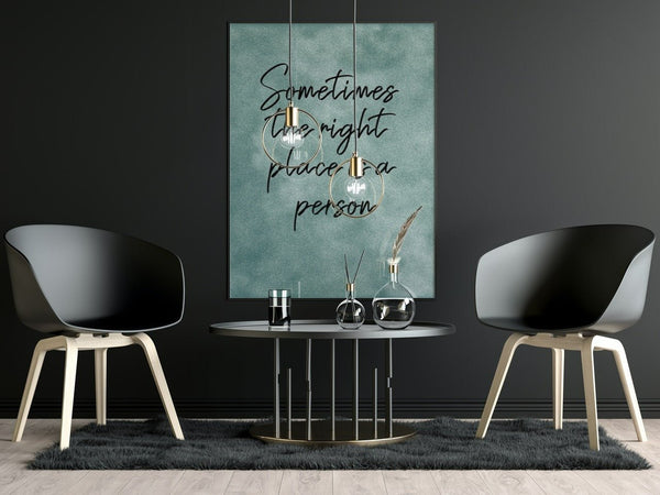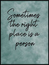 En fin tekstplakat med teksten "sometimes the right place is a person"