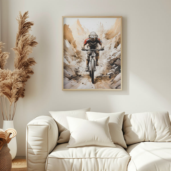 • Etter printing spennes lerretsduken på en kraftig blindramme. For de fleste formatene bruker vi en 40mm tykk ramme, slik at det oppnås en flott dybde-effekt når rammen henges på veggen. Deretter monterer vi på oppheng med stålvaier og kunstverket ditt kan henges rett på vegg.