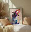 - Etter printing spennes lerretsduken på en kraftig blindramme. For de fleste formatene bruker vi en 40mm tykk ramme, slik at det oppnås en flott dybde-effekt når rammen henges på veggen. Deretter monterer vi på oppheng med stålvaier og kunstverket ditt kan henges rett på vegg.