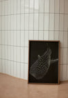- Etter printing spennes lerretsduken på en kraftig blindramme. For de fleste formatene bruker vi en 40mm tykk ramme, slik at det oppnås en flott dybde-effekt når rammen henges på veggen. Deretter monterer vi på oppheng med stålvaier og kunstverket ditt kan henges rett på vegg.