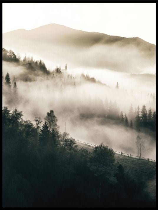 Plakat med motivet tåke i skogen. Passer godt sammen med andre naturplakater.