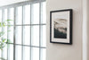 • Etter printing spennes lerretsduken på en kraftig blindramme. For de fleste formatene bruker vi en 40mm tykk ramme, slik at det oppnås en flott dybde-effekt når rammen henges på veggen. Deretter monterer vi på oppheng med stålvaier og kunstverket ditt kan henges rett på vegg.