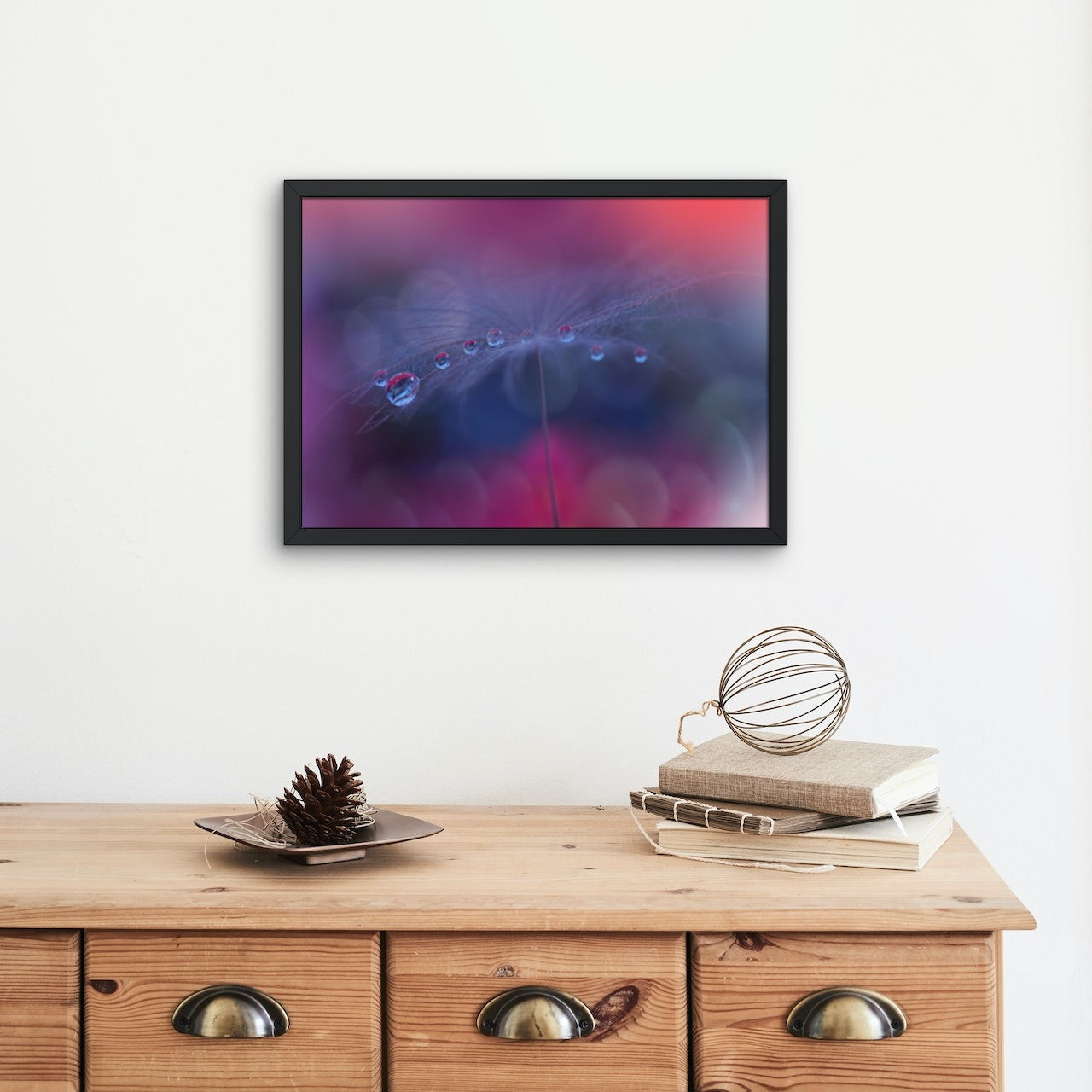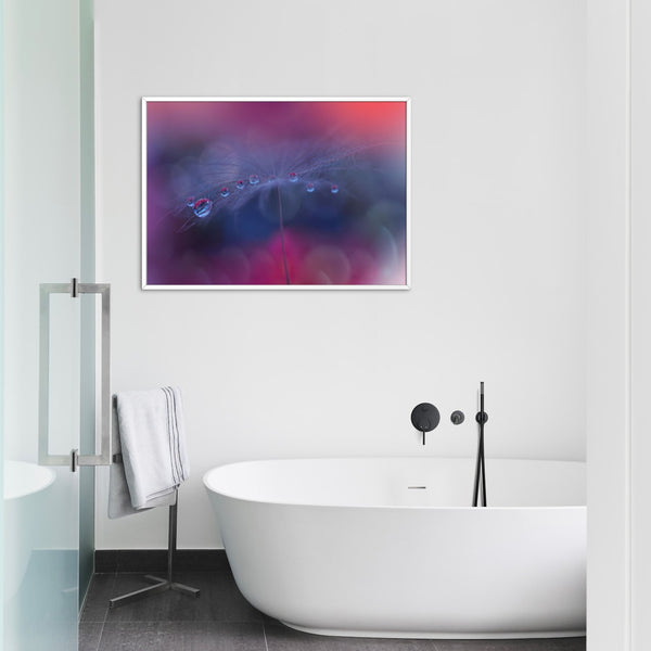 • Etter printing spennes lerretsduken på en kraftig blindramme. For de fleste formatene bruker vi en 40mm tykk ramme, slik at det oppnås en flott dybde-effekt når rammen henges på veggen. Deretter monterer vi på oppheng med stålvaier og kunstverket ditt kan henges rett på vegg.