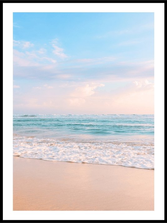 Lys og fint motiv med bølgene som slår inn mot stranda. Passer flott inn på en bildevegg med sommermotiver.