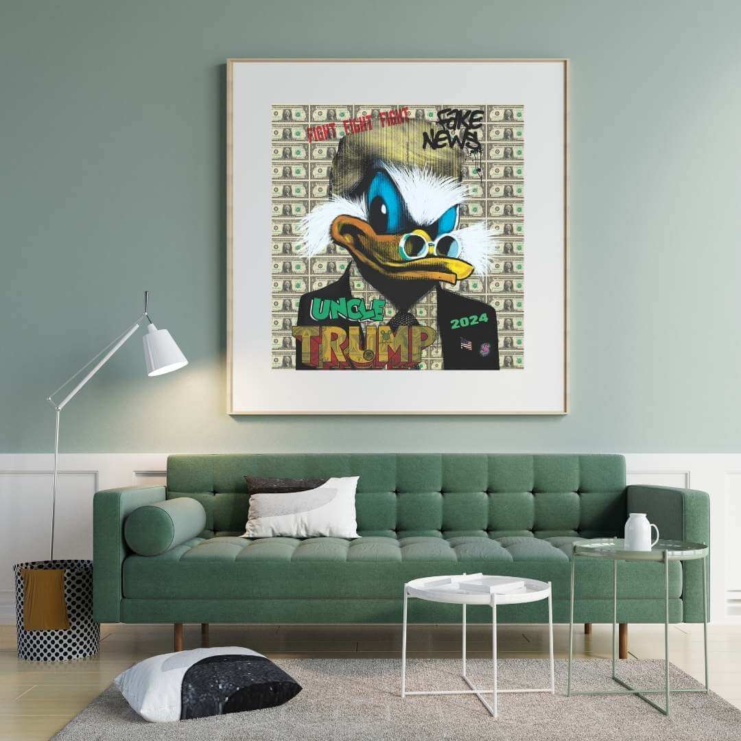 Plakatbar samarbeider med den kjente pop-artisten Pablo Costa. Her kan du kjøpe det berømte verket hans "Uncle Trump" som plakat eller lerret.