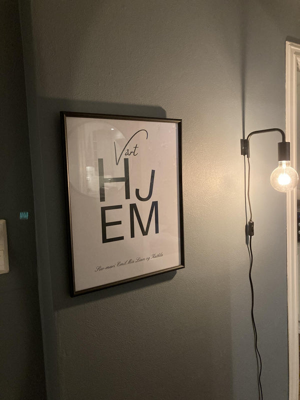 Koselig plakat. Tilpass plakaten og skriv inn familienavnene i husstanden.