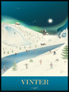 Fantastisk vintermotiv av Norge. Legg merke til detaljene i plakaten med nordlyset, skihopperen, norske flagg, osv.