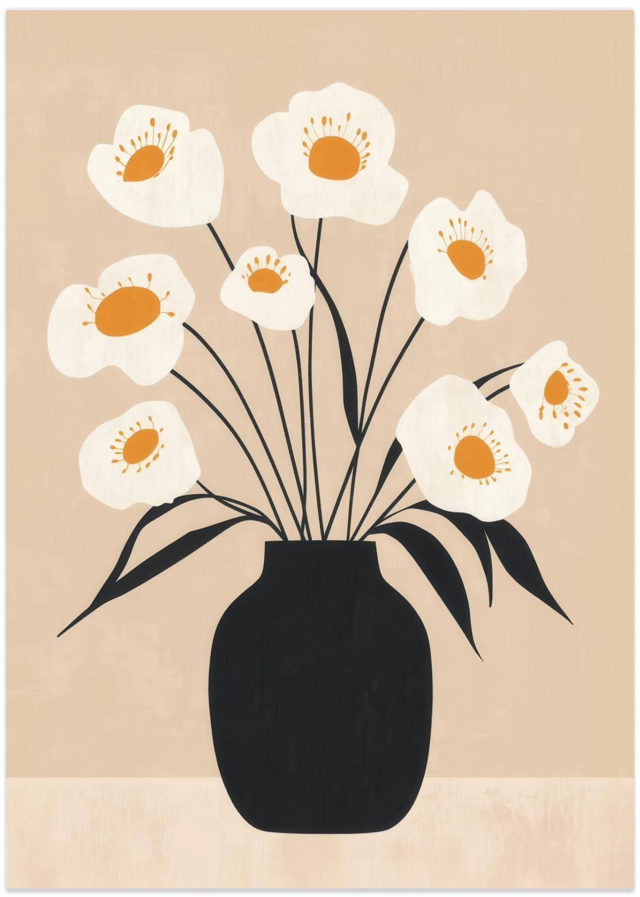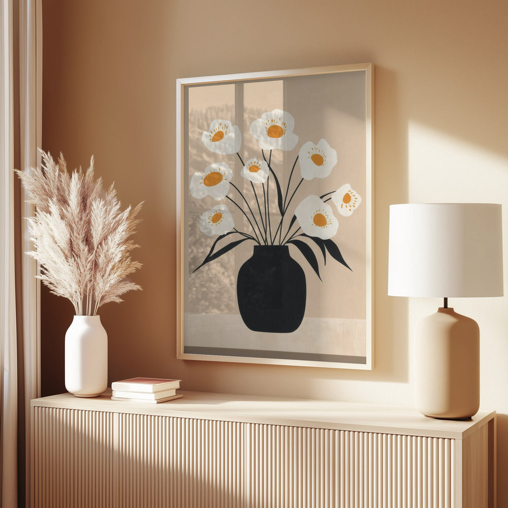 White Flowers in Black Vase av Melloi Art Prints.