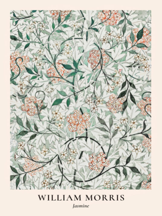 William Morris var en stor tilhenger av naturen, og hans designs var ofte inspirert av flora og fauna. Jasmine-motivet var en del av en serie av blomsterdesign som Morris skapte for å bringe naturen inn i folks hjem. Han ønsket å skape vakre og funksjonelle tekstiler som kunne brukes til alt fra gardiner og puter til klesplagg og tapeter. Og i dag brukes designene hans også på plakater.